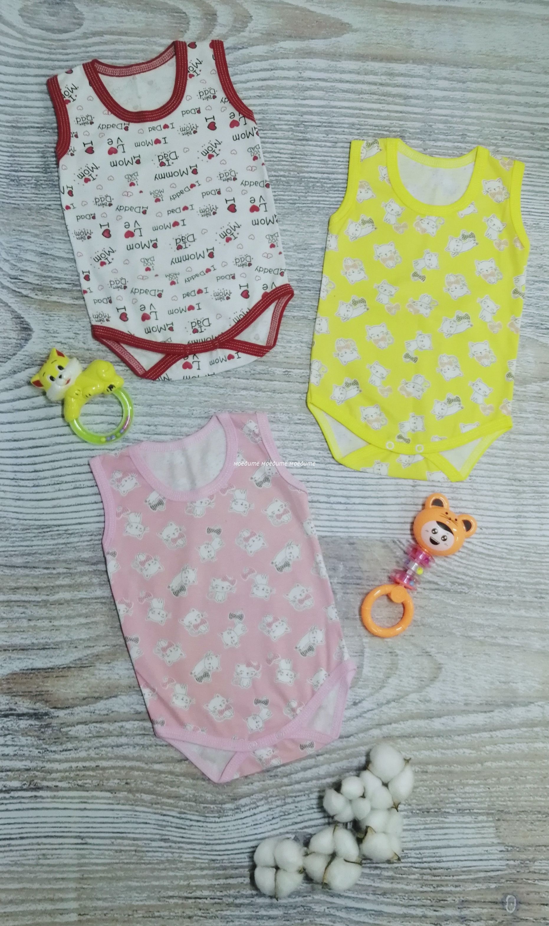 Боди-майка выполнено из 100% хлопка (кулирка). Боди с кнопочками между ножек.