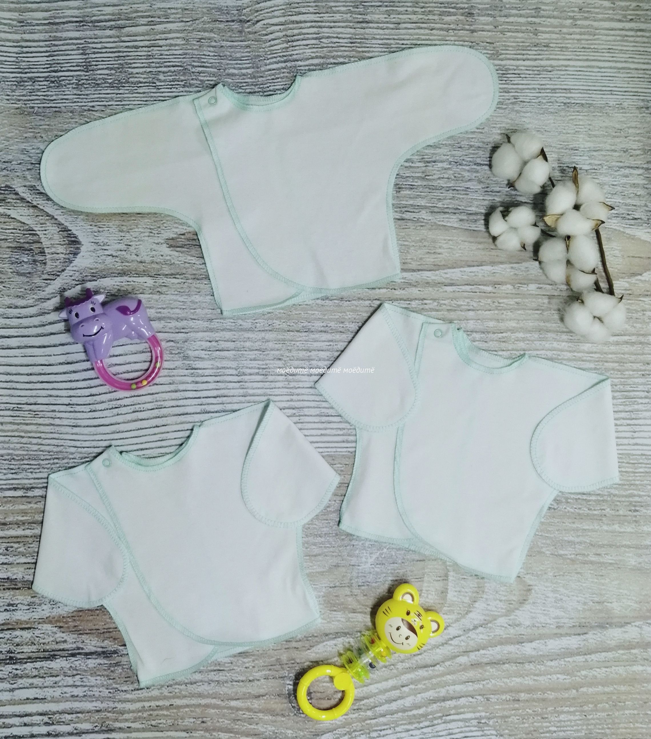 "МоёДитё" распашонка "Нарядная" белая + мята РК003 "Гардения" для новорожденных в Димитровграде
